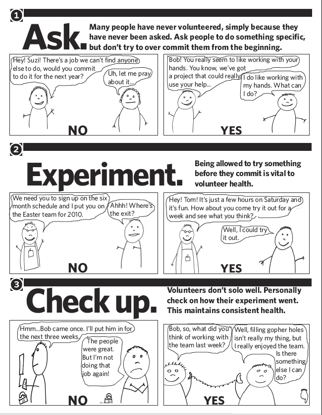 Check out these cartoons I came across on Church Marketing Sucks. They’re humorous but do a pretty good job explaining how to lead volunteers. Pretty cool stuff!