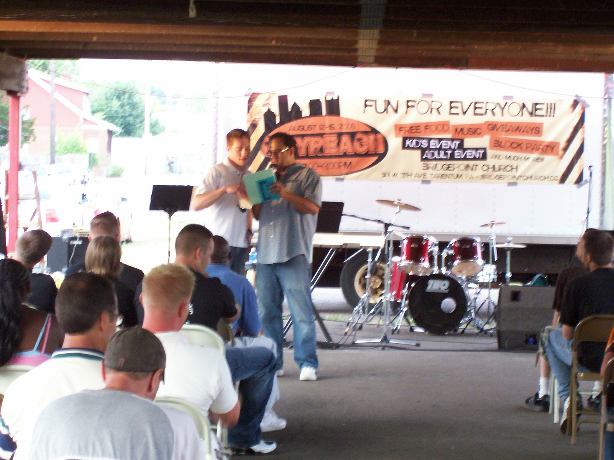 Well, Day 2 of CityReach has come to a close and it was another good one! I was at BridgePoint tonight and we had Seth Franco speak. Seth is a former Harlem Globetrotter who now travels and uses his basketball tricks to share the love of Christ with people. It was a great night to see the pavilion filling up with people from the community! Below, I posted a video of Seth’s basketball routine