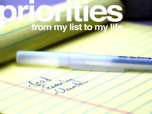 For the last few months, I have embarked on a journey like none I have walked before. Heidi is such an amazing woman of God and I am continually impressed with her strength and encouragement. As we have walked this path of planning out our wedding there are numerous things we have both learned. Over the next few posts, I wanted to post some lessons I’ve learned already over these last few months (although I know there will be many more to come!). These are lessons that I’ve been reminded of or have learned through the process of planning the wedding with Heidi, but apply to life and leadership. So with that said, here is Lesson #1: Pay attention to your priorities.